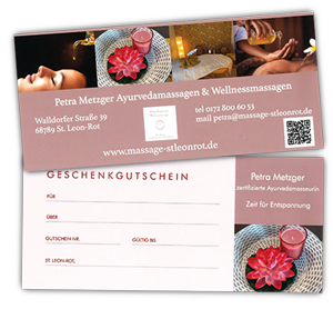 Verschenken Sie Entspannung. Für alle Massagen erhalten Sie auch schön gestaltete Gutscheine.